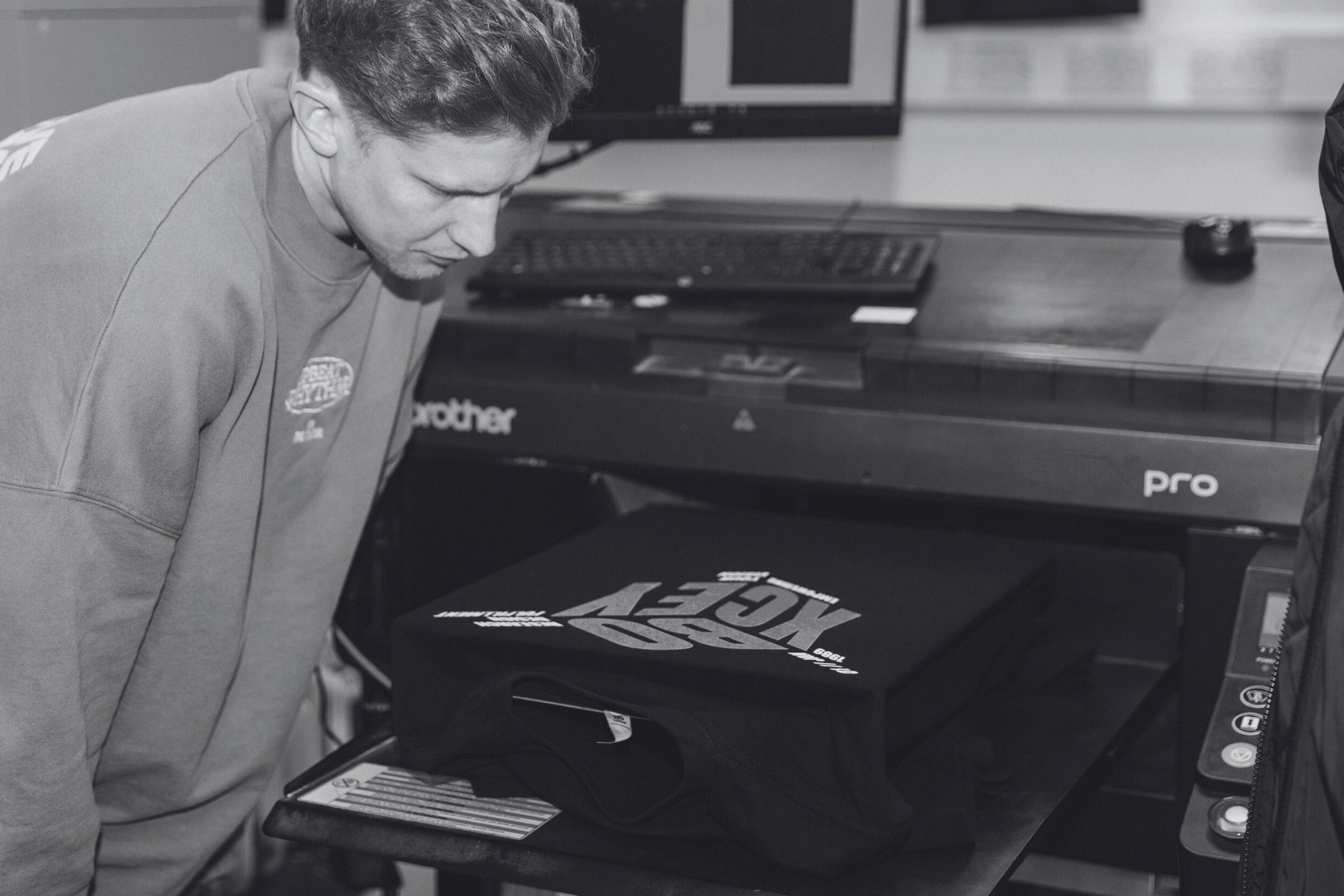DTG printers typically hold the garment in a fixed position, and the printer inks are jetted or sprayed onto the textile by the print head. DTG typically requires that the garment be pre-treated with a PTM or pre-treatment machine.